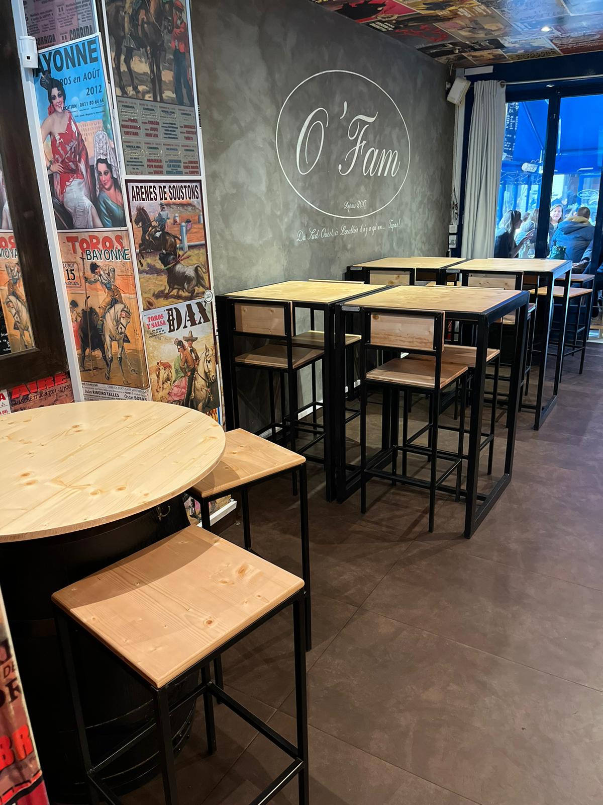 Le partage étant au cœur de nos valeurs, c’est avec enthousiasme que nous avons pris part à la création d’un espace de partage et de convivialité pour le restaurant O’FAM dans un esprit bistrot moderne. Collaborant aux côtés d’un architecte, nous avons réalisé des manges-debout avec des tabourets, réfléchis pour perdurer dans le temps. Pour concrétiser cette vision, Xavier de Favaro Meubles a apporté son savoir-faire dans la réalisation de tables et de chaises en bois, alliant solidité et esthétique. Navailles a pris en charge la création des éléments métalliques, ajoutant une touche moderne et fonctionnelle à l’espace. Enfin, Régis de Meubles Deco Land a sublimé chaque pièce avec des vernis de qualité, garantissant leur longévité et leur éclat.